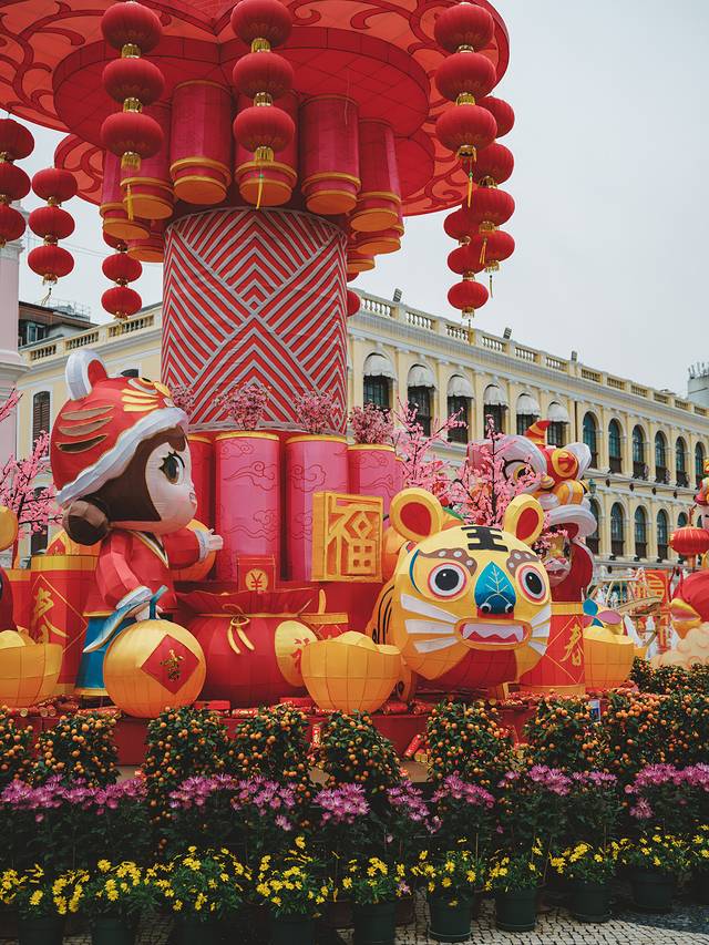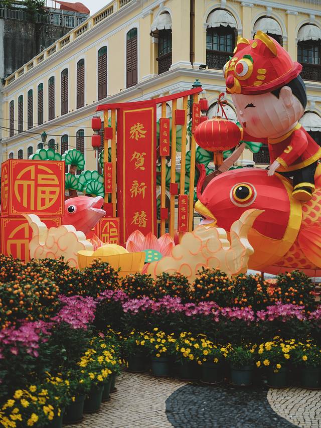 农历新年期间的澳门热闹非凡,大街小巷充满年味,各种新年装饰随处可见,节日氛围感拉满!