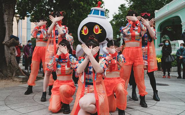 宝迪也同样跟随着花车巡游队伍途径孙逸仙大马路行至澳门科学馆。