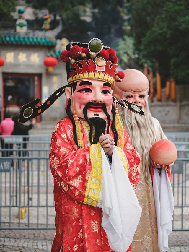 巡游队伍中还有财神、醒狮、福禄寿三星、虎生肖、金童玉女和澳门旅游吉祥物麦麦,除了与观众互动外,还会不时为大家派送金元宝,拿着手里各路贵人们所赠送的金元宝,顿时有了一番好运加持的喜悦。