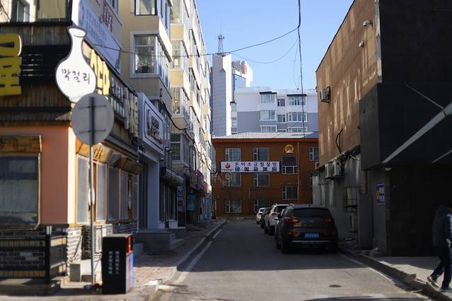 长白市的早晨!我们吃过酒店早餐,出去找超市买泳衣,因为晚上我们要去泡温泉。