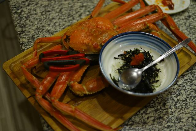 大板蟹、北极贝、拌面、海鲜粥,玉米酒,都超级美味。