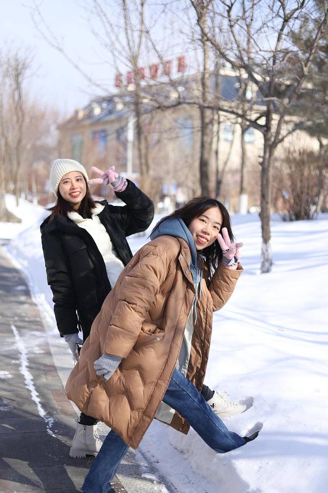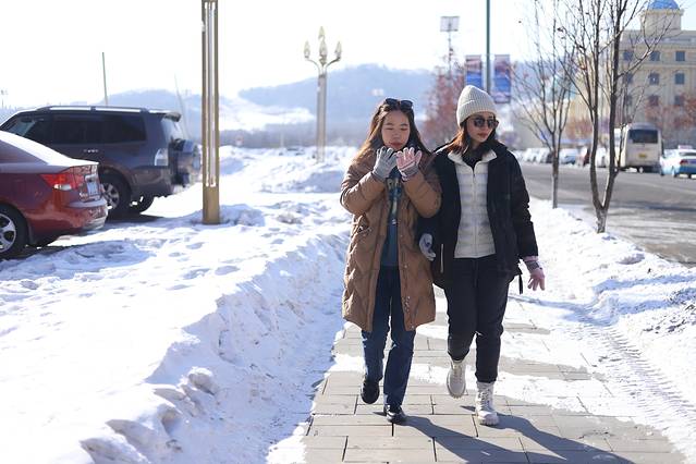 大年初三早上8点飞机,当天凌晨5点出发白云机场,到下午大概2点多到长春龙嘉机场。然后就是东北的朋友(peter,大宇,璐璐)专车接机。出来机场就是零下16℃,东北的朋友一看到我们第一句话就说:哎啊,你们多穿点啊,快快快,把外套穿上,不然会着凉的,快点穿上外套~~~!!我们三姐妹都笑出来了,因为当时,我们真的不感觉冷。然后上车有暖气,更是热了。而且,这几天下来,南方的亲友们都让我不要回去了,顺德又湿又冷。我在想,难道我是来东北避寒的吗?哈哈哈