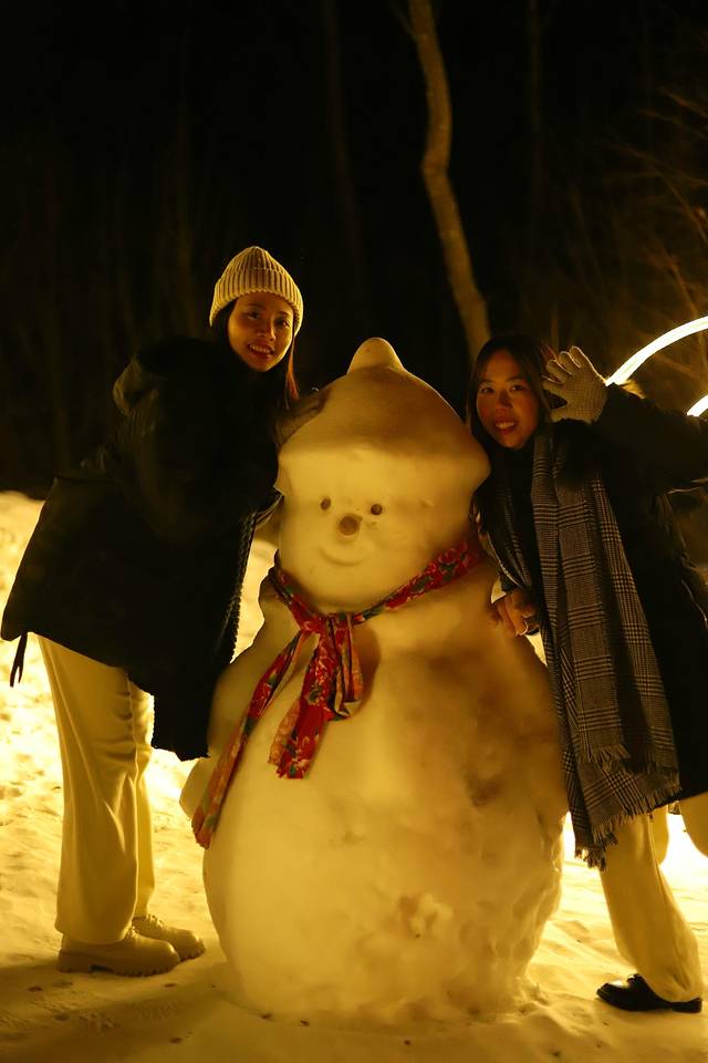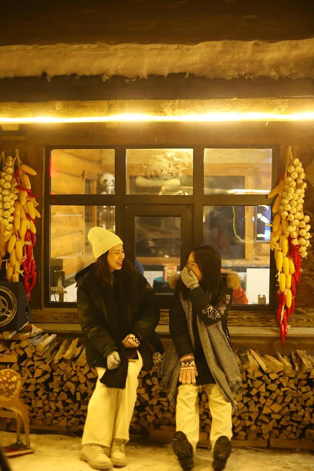 假装在里面吃火锅,里面没有外面冷,这是真的用雪对出来的雪屋。