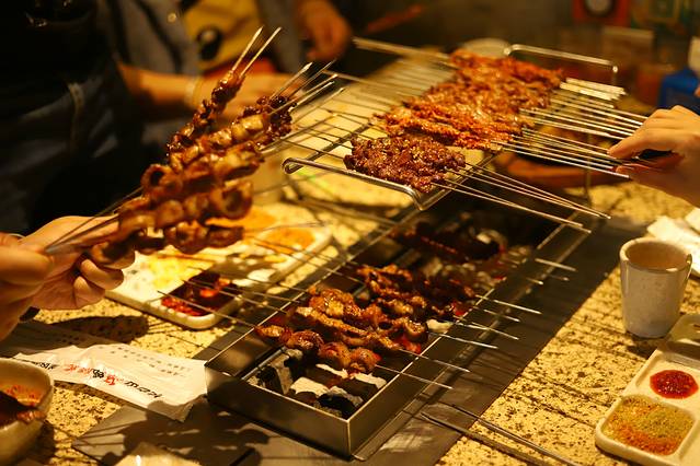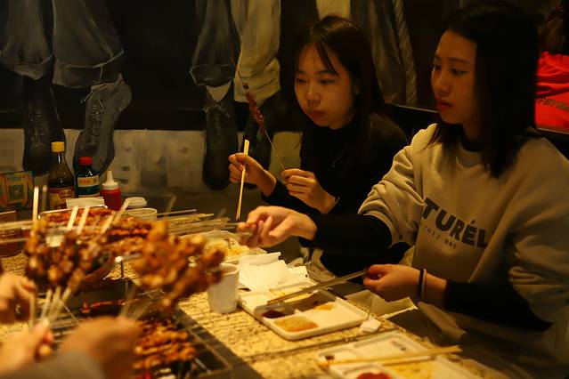 这是我们第二顿正餐,丰富满足。别人说,没有吃过东北的烧烤都不算来过东北。于是Peter带我们去吃当地小有名气的烧烤店“阿郎烧烤”;