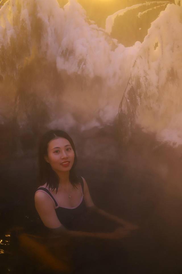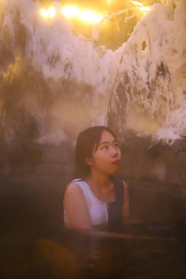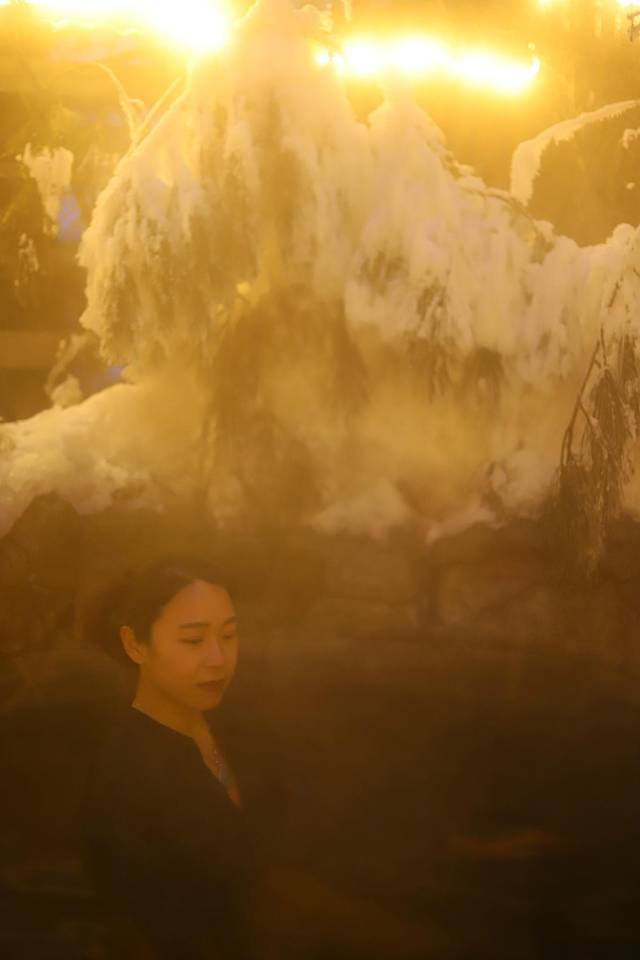 驱车前往网红温泉酒店,100元/人,里面有室内和室外温泉,都可以自由选择。一定要试试室外的,运气好还会一边泡温泉一边在下雪。建议白天去泡,会很出片。