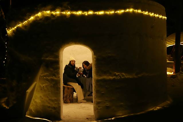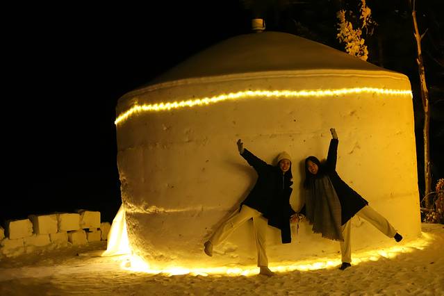 虽然不是我们预期中的雪地上的天幕形式,这雪屋还是挺有趣的。