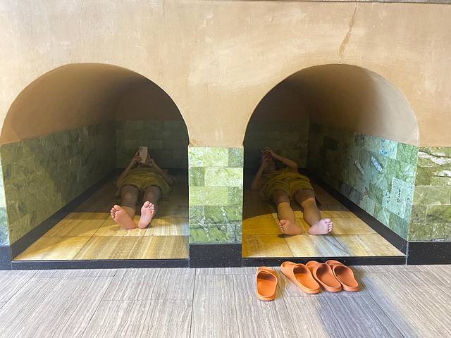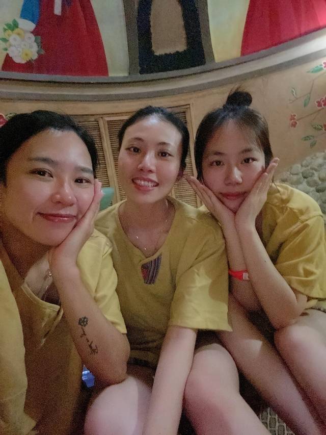 推开女宾大门的一刻,真的南方妹子大开眼界。里面的人,赤裸裸的坦诚相见,完全没有一丝尴尬。然后,我们三眼神闪躲的走到自己的储物柜前,一位服务小姐姐走过来说,你们脱衣服,换上汗蒸的衣服,这边是搓澡,还有沐浴的地方,二楼是汗蒸,就餐......介绍了一轮,然后一直没有打算走开的样子,好像在等着我们脱光换衣服,可是我们就是扭扭咧咧的不想在她面前脱,最后小姐姐好像意识到我们的尴尬,于是笑着走开了。我们马上换上衣服,走到二楼正常的世界去汗蒸,可以说真的好舒服。所以,我们是没有去享受“搓澡”的,我们只是看着别人被搓,两个赤裸裸的人.......还是等我做好心里准备,有机会再东北去尝试吧,哈哈!