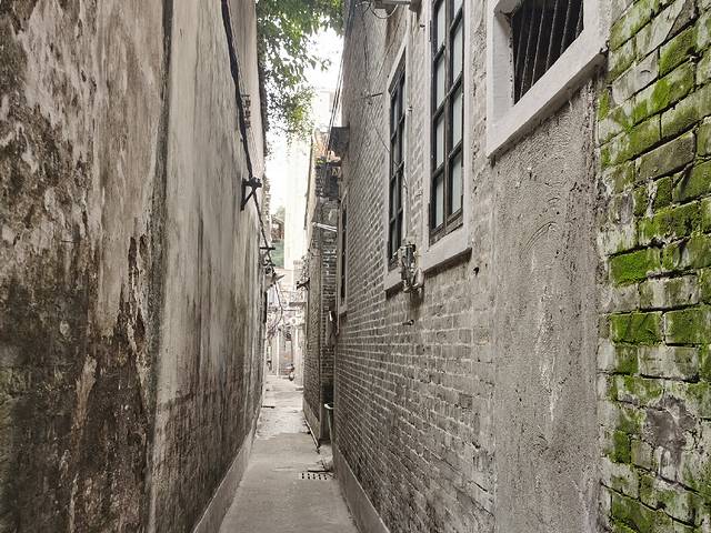 沿着古巷向北,就来到仁寿寺的后面,在莲花市场旁边,也有几栋老宅子,已经是人去楼空,几乎成了危房,其中沙塘坊10号民居作为佛山历史建筑被保护起来,它是岭南传统民居的代表,能够反映当地民居的历史风貌。