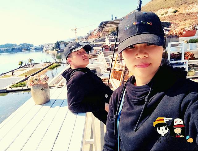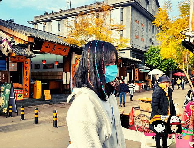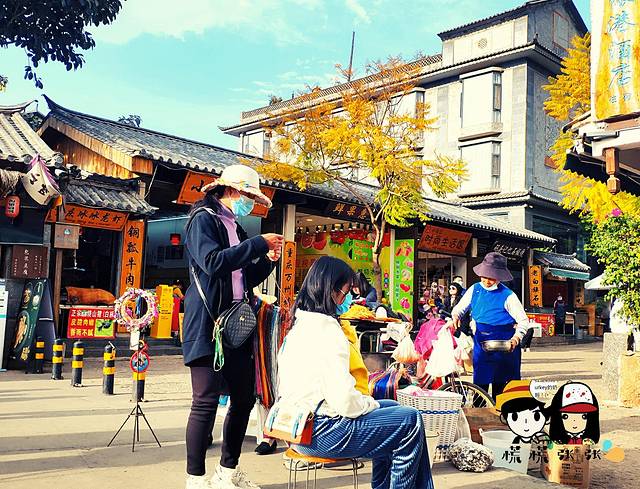 南诏风情岛售票处的广场边编彩辫,然后继续走到底