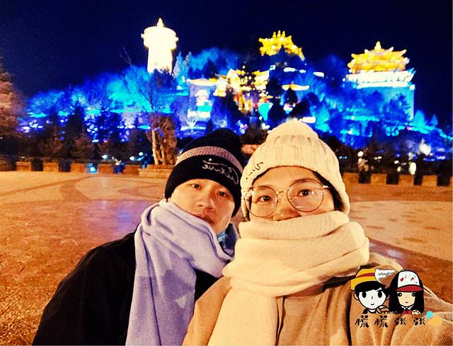 虽然天冷,但月光广场的夜晚比白天的人多些。