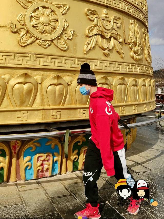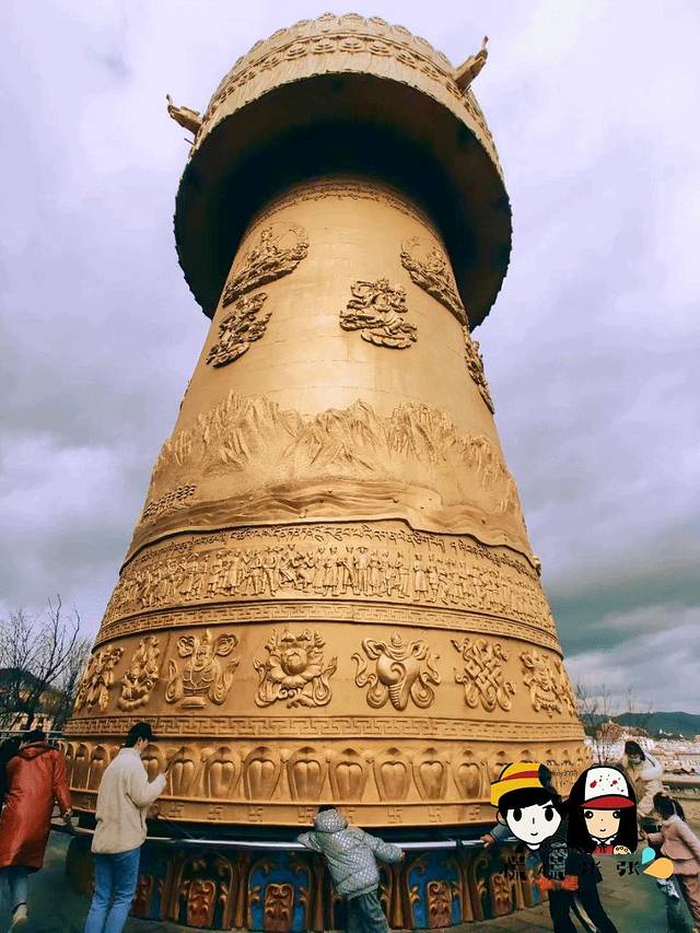 要想转动如此巨大之经筒需众人同时着力,每顺转一周,相当于默念佛号124万声,转满三周,就可以消灾祈福,吉祥如意。