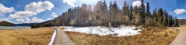 许是知道我们要来,前一晚的雪下得够大,天空也比第一天来时更加明媚,让我们看到了不一样的普达措。