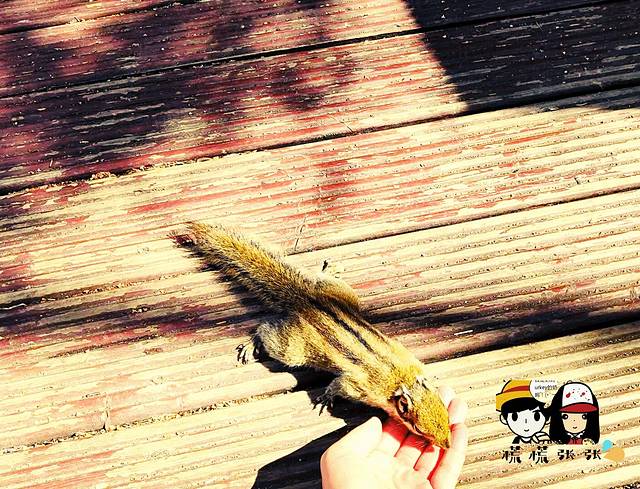 有些害怕人类,但愿意尝试接近你的小松鼠。吃的得手后,咻地一声,就跑到了不知道哪一个枝丫上。我们慢慢走,有一只还想悄悄在后面跟着走,真是个小吃货呢~
