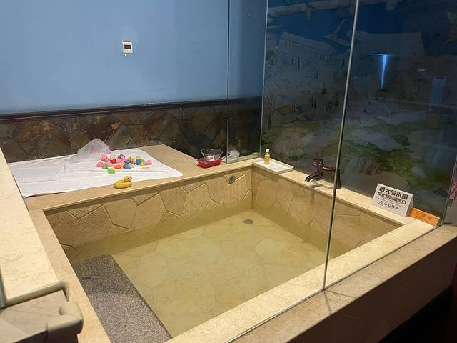 本打算先办理入住,带妞出去转转,玩累了晚上晚上再泡温泉,可小妞来了兴致,索性放水泡吧
