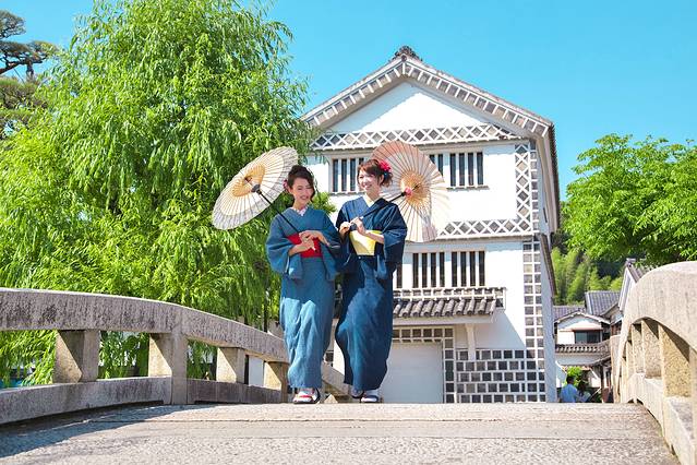 冈山的第一站,我们选择到仓敷美观地区。这里白壁黑瓦,小河垂聊,完整保存了日本江户时代的风貌,是感受传统的日式风情的好去处。