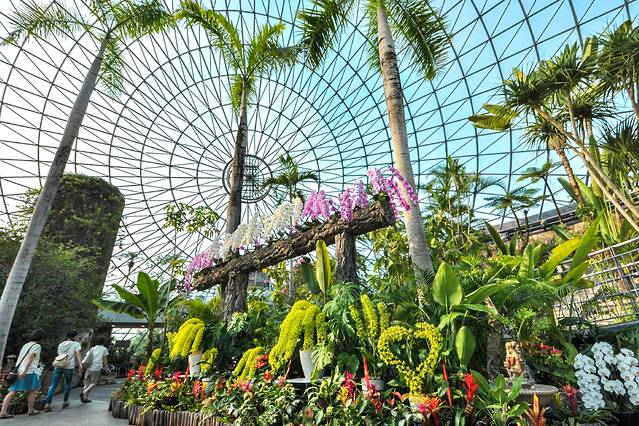 而且冬天还会设置景观照明,可以欣赏到灯光和花朵相互映衬的美丽景色。