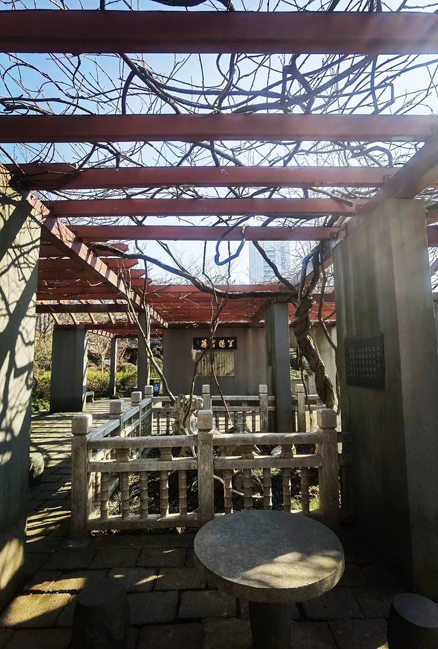 为保护这株上海最古老的紫藤,上世纪90年代,兴建了“古藤园”,原来的小街消失了,一棵树长成了一座公园,生机勃勃的“古藤园”,如今成了当地的一道风景线。