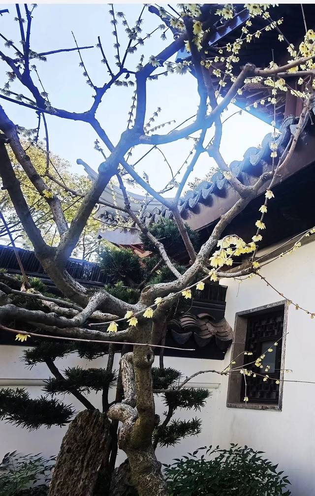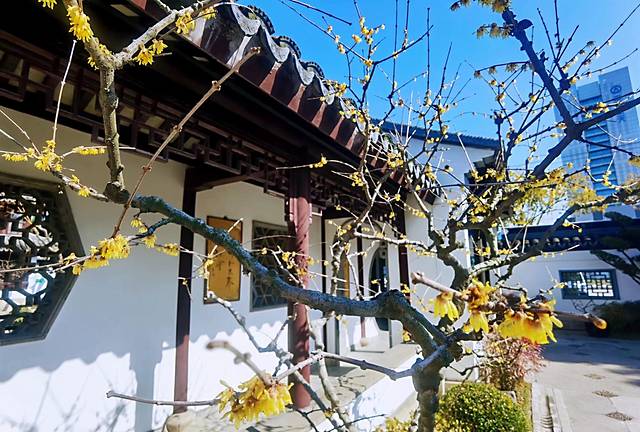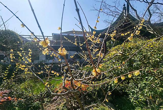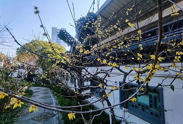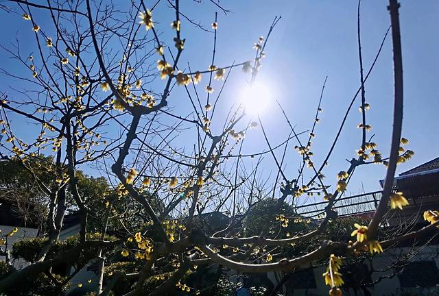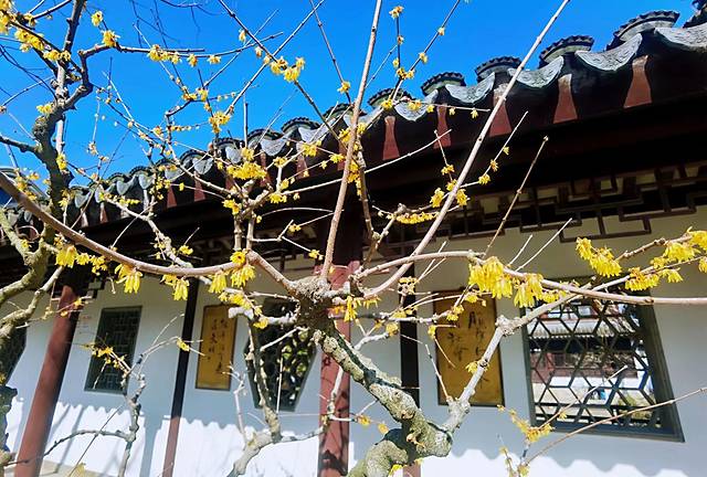 紫藤还没到赏花时节,腊梅却已悄然绽放,此时的紫藤没上线,然赏梅正是时候。