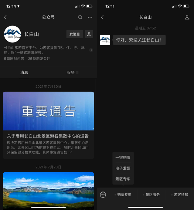 现在因为疫情,所以 长白山 的门票只能通过微信公众号购买了。