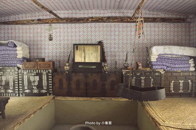 这里还展览了当年满族人生活的居室,能看到很有特色的婴儿吊床。