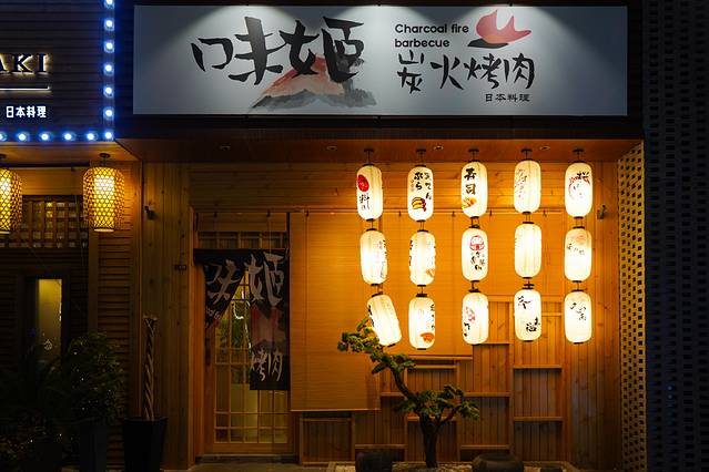 每个店铺的装修都各有特色,吸引着食客进去品尝一番。