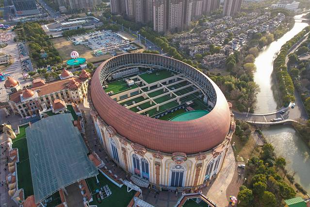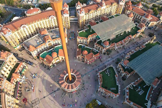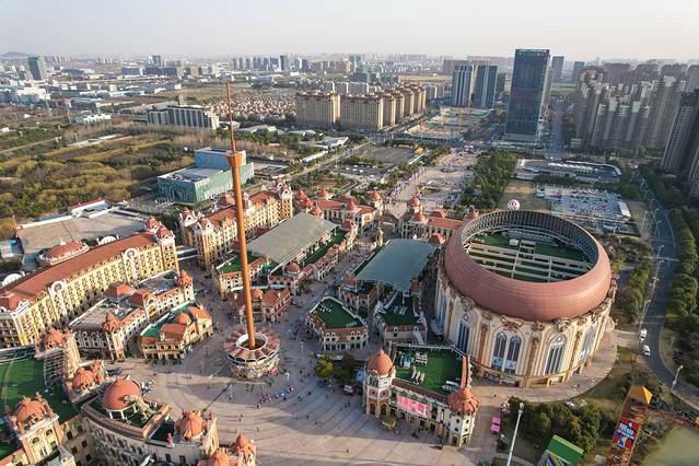 这里之所以奇特,还是因为这里是东经120度北京时间的基准经线,因此这里有一座东经120的观光塔,可以登上高处360度观看风景。这是我国最高的旋转观光塔,高120米,登上塔顶全程10分钟,360度旋转上升,来一览环球恐龙城的全貌吧。