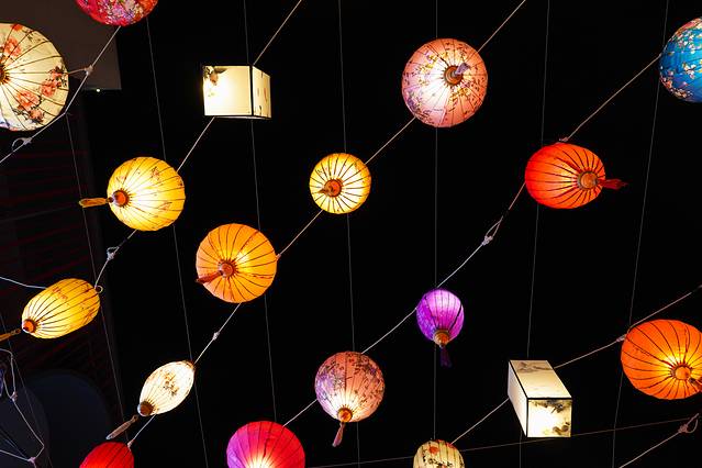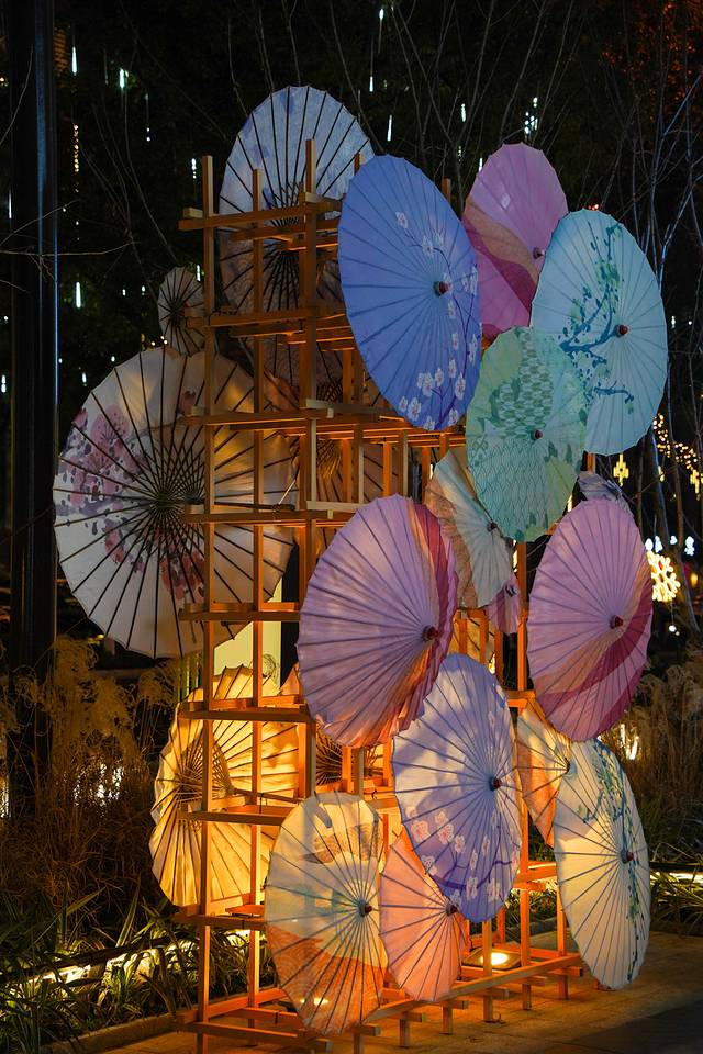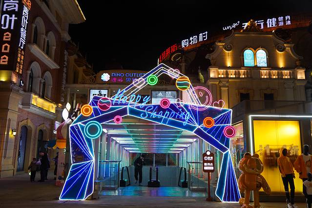 这里布置地很漂亮,各种灯展,灯笼,将这条街照亮。