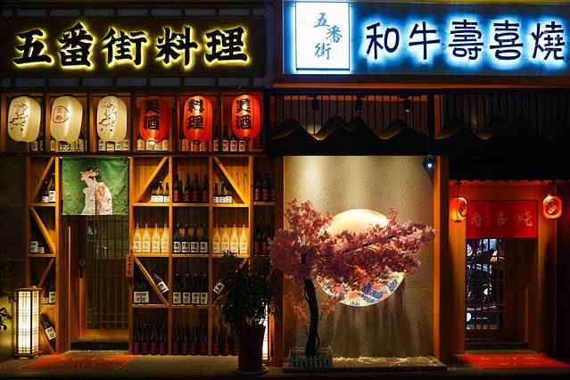 这里运用了很多的日式元素,将这条街整个打扮起来。