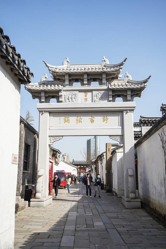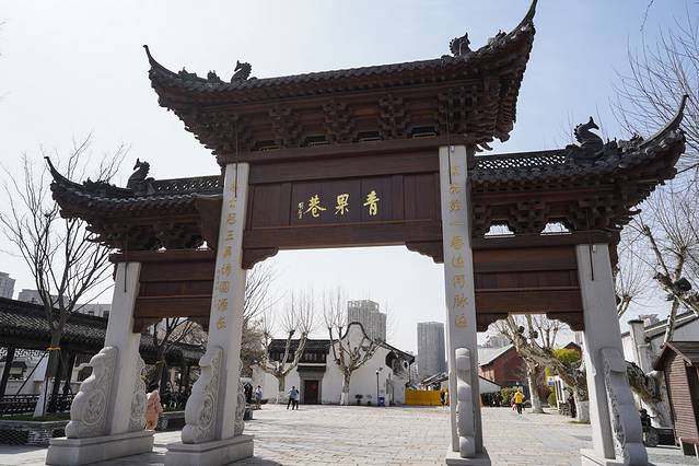 气势雄厚的牌楼,上面书写着青果巷三个字,这便是青果巷的入口处,飞檐翘角,欢迎八方游客。