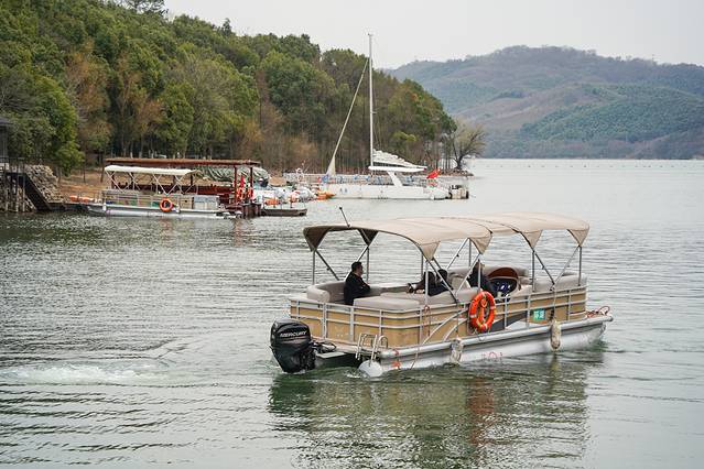乘坐游船,畅游天目湖,近距离感受湖光山色的美好。