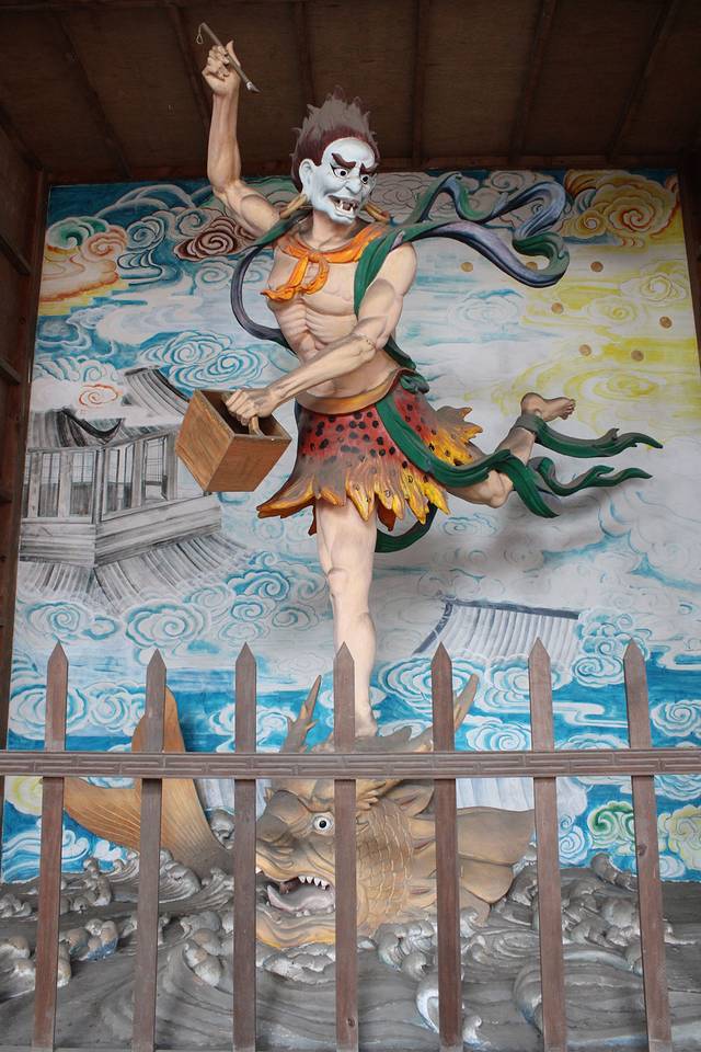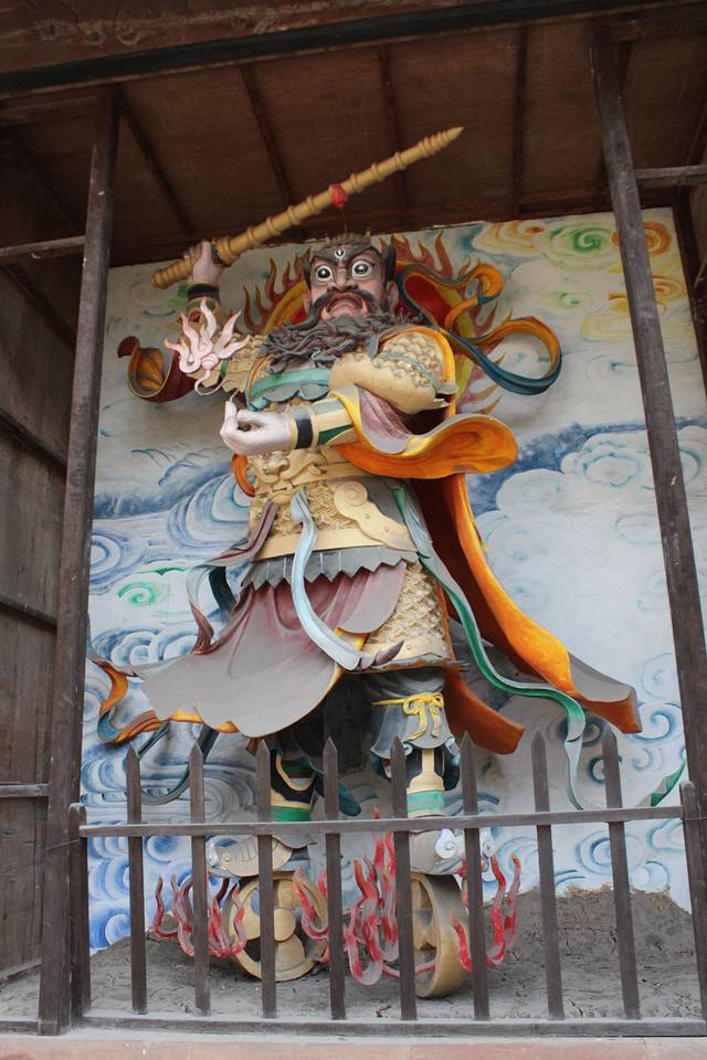 王灵官,进入道教的宫观,山门内的第一座殿往往为灵官殿,殿中供奉着一赤面髯须,身披金甲红袍,三目怒视,脚踏风火轮,左执金印,右举金鞭,形象极其威武勇猛,令人畏惧的神仙,这就是道教的护法神将王灵官,又称火车灵官王元帅。王灵官面对山门,额上火眼金睛,能辨识真伪,察看善恶。因此道教徒到宫观,进山门后首先朝拜王灵官,民间流传有“上山不上山,先拜王灵官”的俗语,以表达对这位道教护法神灵的崇敬。