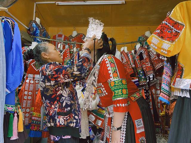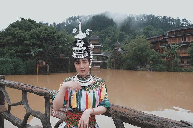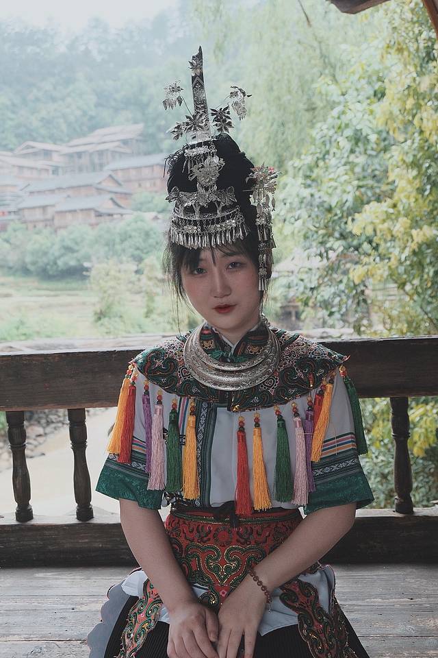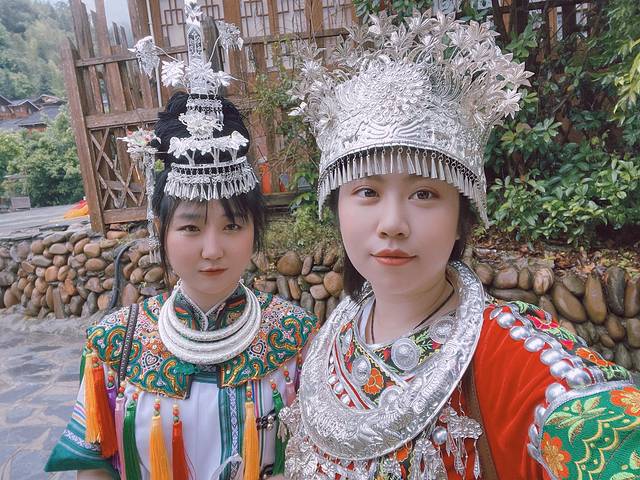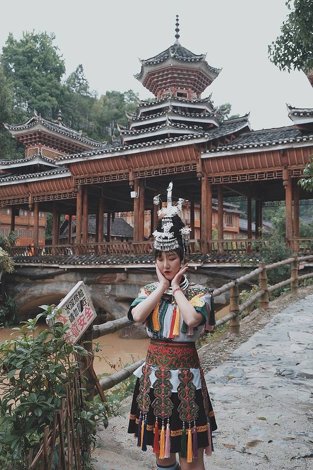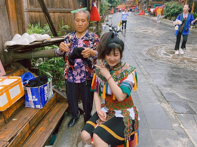 今天有个小目标就是体验侗族服饰,我最喜欢的项目之一,之前在尼泊尔穿过沙丽,在济州岛穿过韩服,在老挝穿过老式筒裙,这回体验下最炫民族风, 肇兴 的很多店铺都能租服装,除了我这种侗族的还有苗族的,价格一般是40元两小时,我还做了侗族的盘发,需要另外的费用,老板娘大妈很好讲话,超出点时间也不会多收费用。