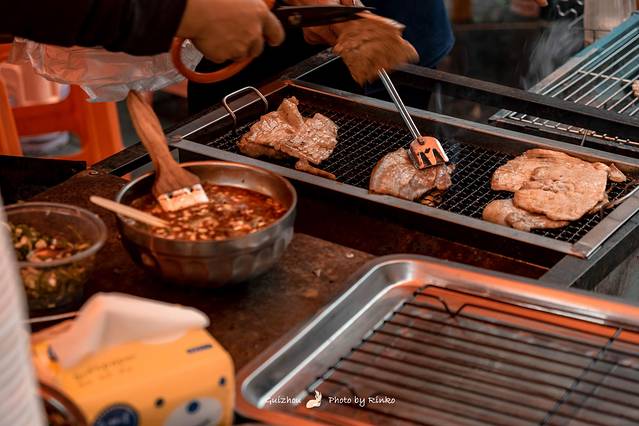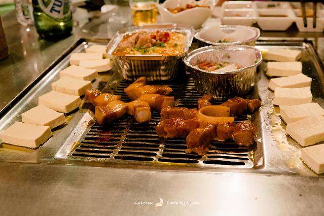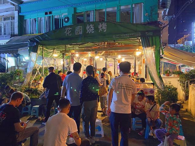 本来要去小胖烧烤和杨婆婆烧烤的,等我们放下行李走了两公里,途中都是地下通道,走得大汗淋漓,到了才发现两家店都已经卖光打烊了,气得我想满地打滚。朋友丹尼说要不去这家——花园烤肉???听名字好像很一般,没想到门口全是等位的人,在我们前面有30多桌,要知道这可是晚上十一点,来都来了那就等呗。等了四十分钟左右终于轮到,其实我也不是很饿,但就是想感受下不同的氛围,门口一个牌子赫然写着“××××全城热度第一名”,心想这烤肉能有多好吃。