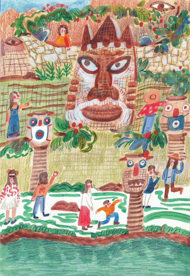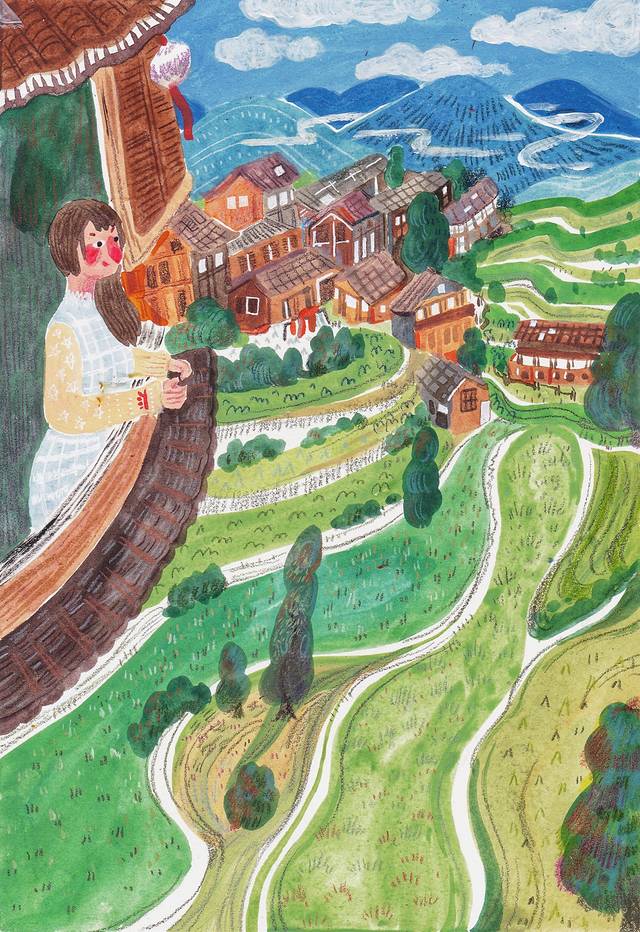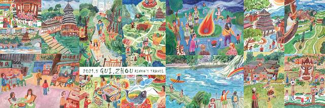 这次的画又经历了我最不擅长的青山绿山,尤其是绿色的部分搭配很多民族元素,一不小心就导致色彩饱和过高,如同“农名风俗画”。有趣的是,在这过程中找到了今后边走边画的方向,也许应该更纯粹和简单一点。