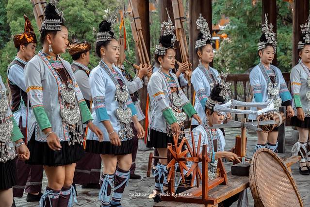 侗族大歌入选联合非物质文化遗产,是一种无伴奏、无指挥的多声部合唱。想像在千山万水间,飘出最纯粹的天籁之音,高山流水,原生自然。越来越多的旅行者来到侗寨,侗族大歌名声大噪。在肇兴的街头还是能看到一些侗族大歌表演的影像,原始的大歌对于游客来说难得一见,一些歌堂也会表演其他的演出以此吸引观众驻足。
