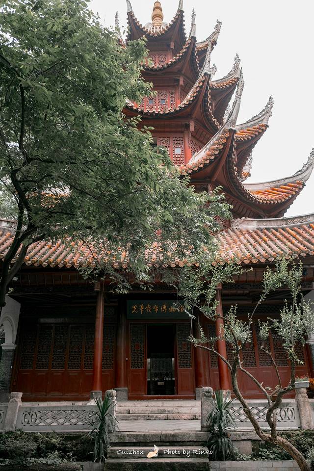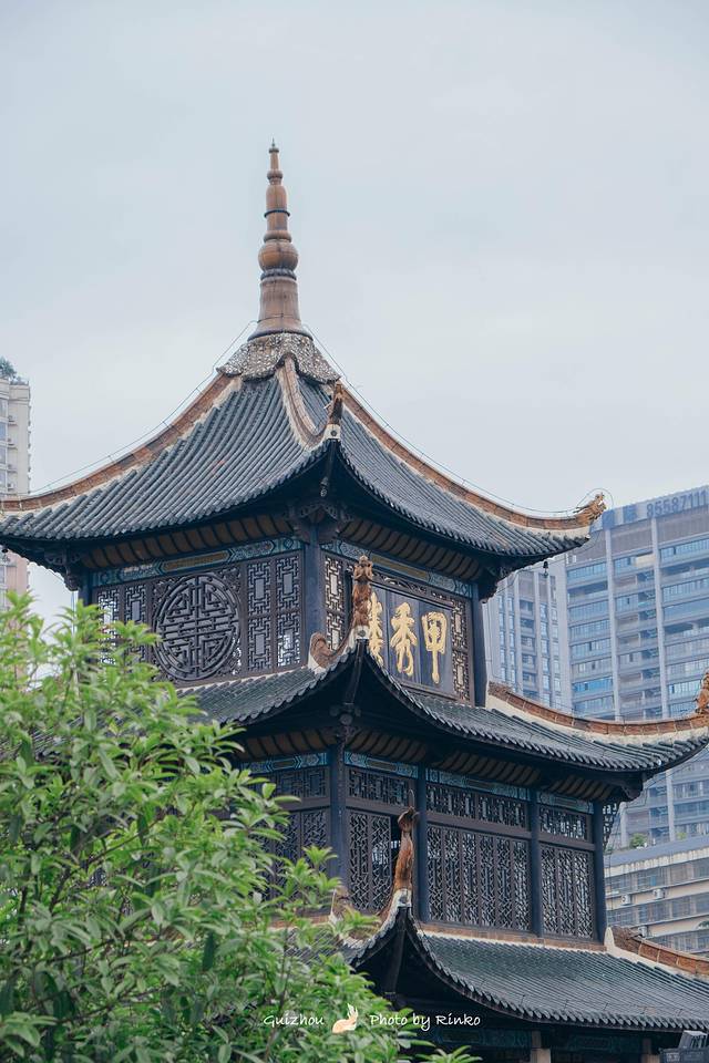 我是从一些摄影作品中发现的这个地方,是一个小众宝藏景点,作为文艺复古爱好者怎么能错过。古建筑五层八角楼现在作为钱币博物馆,精舍不大,建筑错落有致,金色的琉璃瓦,斑驳的墙壁,诉说着一段贵阳往事,恍惚间看到那些旧时光的景象。