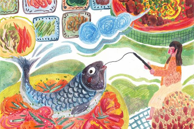 侗家自有“侗不离酸”的说法,除了招呼游客的酸汤鱼,还有本地人自制酸食,我们在侗寨吃得最多的便是腌酸。腌,也就是把鱼、猪肉、蔬菜等进行腌制,几乎家家户户都会有,对侗家人来说,一切食物都可以“酸”,就拿腌鱼来说,肥美的稻田鱼先用盐腌制,加热熏干鱼肉,用糯米进行发酵形成乳酸,为鱼肉带来特殊的滋味,吃起来又咸又酸又香,超级下饭。