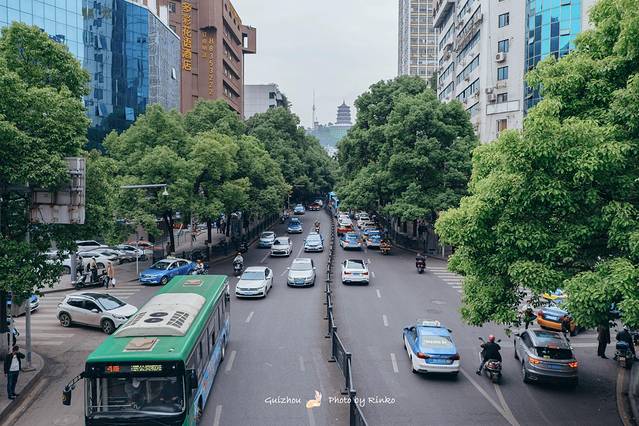 贵阳是因山水而灵秀的城市,地名都很好听“云岩”、“花溪”、“南明”“乌当”……喀斯特的地貌让城市与自然山林紧密相连,城里漫步,到处可见的山丘,突兀地穿插在楼宇之间,走着走着不知何时有了空间上的错位,这样的视觉效果也属奇特,好像建筑才是依附自然之上的不速之客,如同走进了巨型的魔幻盆景世界,植被铺天盖地,我们都是生活在里面的小人城城民。