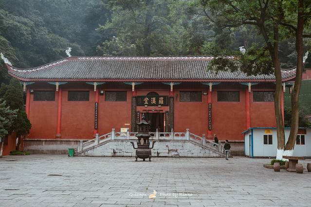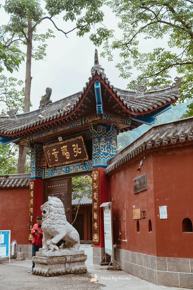 弘福寺是一片红墙围绕的古刹,自开山以来便佛法兴盛,三进殿沿着地势层层提升,天王殿、观音殿、大雄宝殿分别供奉弥勒像、千手观音、释迦牟尼像,另有诸神菩萨罗汉塑像。檐头和屋瓦适合拍摄出片,正门口有一巨型琉璃壁画“九龙浴佛”,也可打卡留念。香火味萦绕山间,梵音阵阵,洗涤身心。