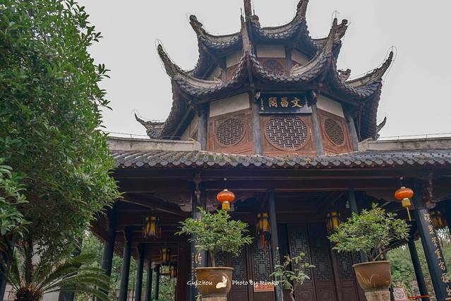 文昌阁以前是贵阳古城的老东门,建于明代,最早是为了供奉文昌帝君,独特的三层三檐九角的尖顶建筑,在中国的传统建筑中,一般以偶数为等角,像这样以九的奇数角比较罕见,取自于《易经》当中“九”为至高无上之意。