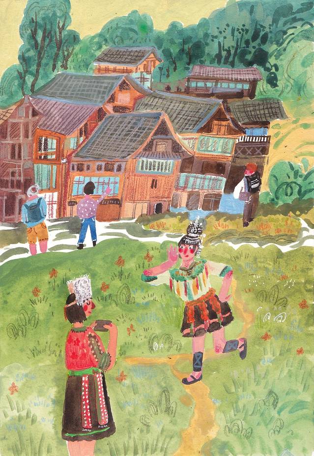 灵山秀水吊脚楼,色彩斑斓最炫民族风是贵州令我好奇着迷之处,成为了我画画采风的最大收获。