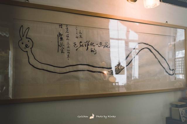 位于文昌阁附近,正好我要前往文昌阁,位置并不难找。店内是复古原木日系的装修风格,虽然位置不多,但拍照很出片。二楼是个阁楼,文艺情调。前台挂着陈粒画的《正在消化一朵花的兔蛇》。