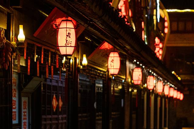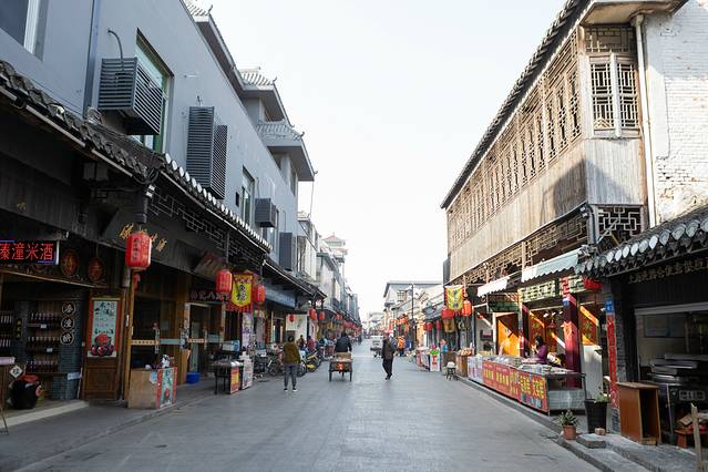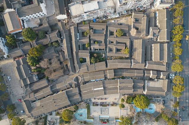坐落于凤城河畔桃园景区外的泰州老街,是一条约600米长的青砖黛瓦古建筑群,也是泰州非物质文化遗产的聚集区。整条街既古色古香,又充满了烟火气息。漫步于古老的麻石街巷,两侧是琳琅满目的古式店铺。成串的大红灯笼、飞檐翘角的古戏楼台、各式传统泰州小吃,老城生活展现得淋漓尽致。