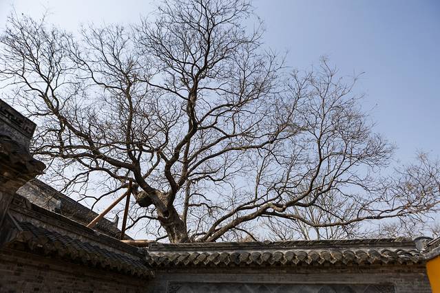 第二棵树是唐朝的神槐,坐落于绿树禅寺内,经专家论证距今已有1100多年树龄。神槐的主杈已经延伸到墙外的街道上了,真是让人感叹大自然的伟大。