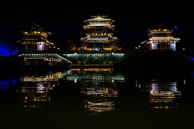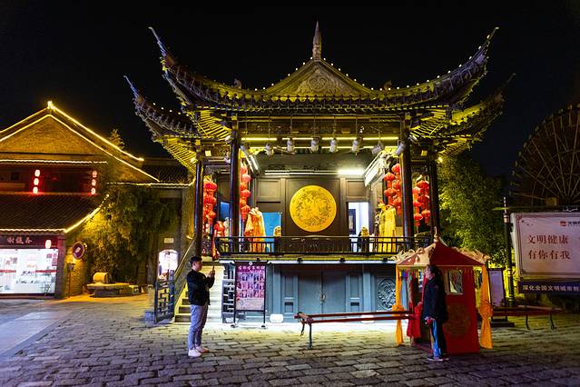 泰州是一座水的城市,有着特色的水文化体系。凤城河景区主打泰州历史、戏曲、民俗、商贾四大特色文化,沿着河畔坐落有望海楼、州城遗址、碑苑、桃园、文会堂、梅园等30多处各式景点。每当夜幕降临,“夜游凤城河”就成了来泰州旅游必不可少的体验项目。夜幕中的凤城河景区,名楼、名园都披上了灯光,流光溢彩。乘坐画舫游船,迎着徐徐微风慢游,体验梦幻的水上风情。