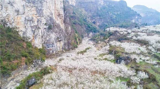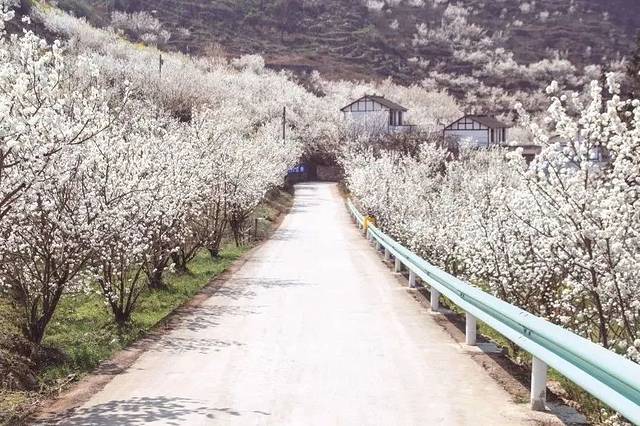 在乡间公路上行驶,不时有成片的樱桃花林映入眼帘。从高处往山谷中走,一路呼吸芳香,一路沉迷于樱桃花的海洋。