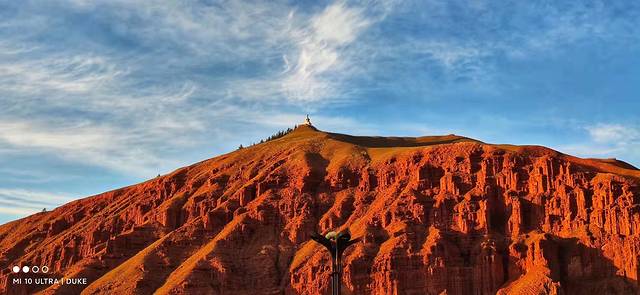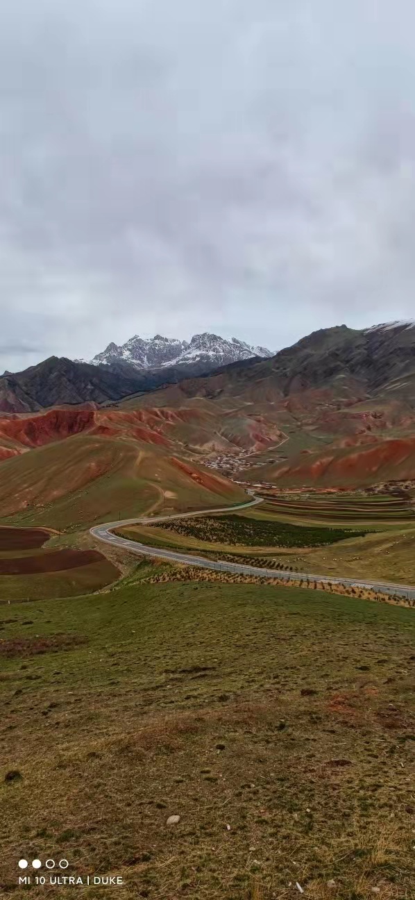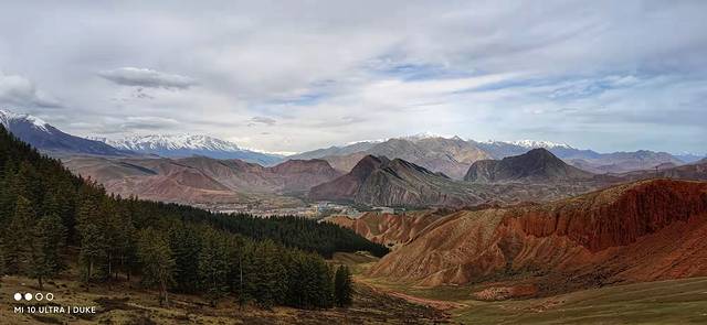 晚上入住祁连县城,这边发展还是比较成熟的,很多酒店和饭店,县城里面也比较热闹。早点休息,准备第二天早上爬卓尔山。第二天八点半我们上了卓尔山,同样需要买环保车票,20块一个人,也就坐了2公里路吧,卓尔山是祁连山脉的一部分,属于年轻的丹霞地貌,这次不能去张掖就这里看看也不错。上了卓尔山能看到远处的牛心山,据说是藏族神山,在这边看还是非常震撼的,感觉就在眼前了,在山上大概玩了2个多小时,感觉不错。中午,天上开始飘雪花,我们赶紧下车。