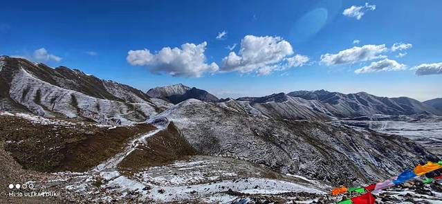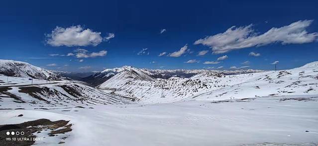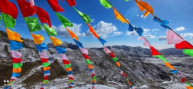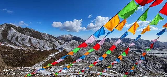 拉脊山本来不在行程中,我在别人的攻略中看到这个地方,觉得很美,就让司机走了这条路线,到了以后,发现这里出乎意料的美,这里是我们此行翻越的第一座雪山,海拔3820,山上风很大,天空特别蓝,这里有个景区叫宗珂拉泽,当地人叫小布达拉宫,可以买票进去20一人,我们觉得雪山已经很好看了,就没有进去,在门口拍了几张就出发了!