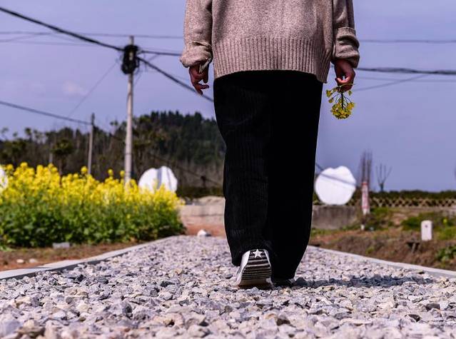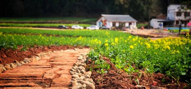 走在这个碎石路上,享受着来自大自然的按摩手法,看两岸油菜花盛开,自在的微风铺面而来,舒适且惬意。