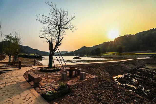 沿途欣赏黄家湾的十里桃林时,天色已渐暗,此时又萌生了在此住上一晚的想法,同行的伙伴说,景区的凤凰湖是一个民宿集群,各式农家小院风格的民宿,可以全方位、近距离接触大自然,我们便欣然前往了。